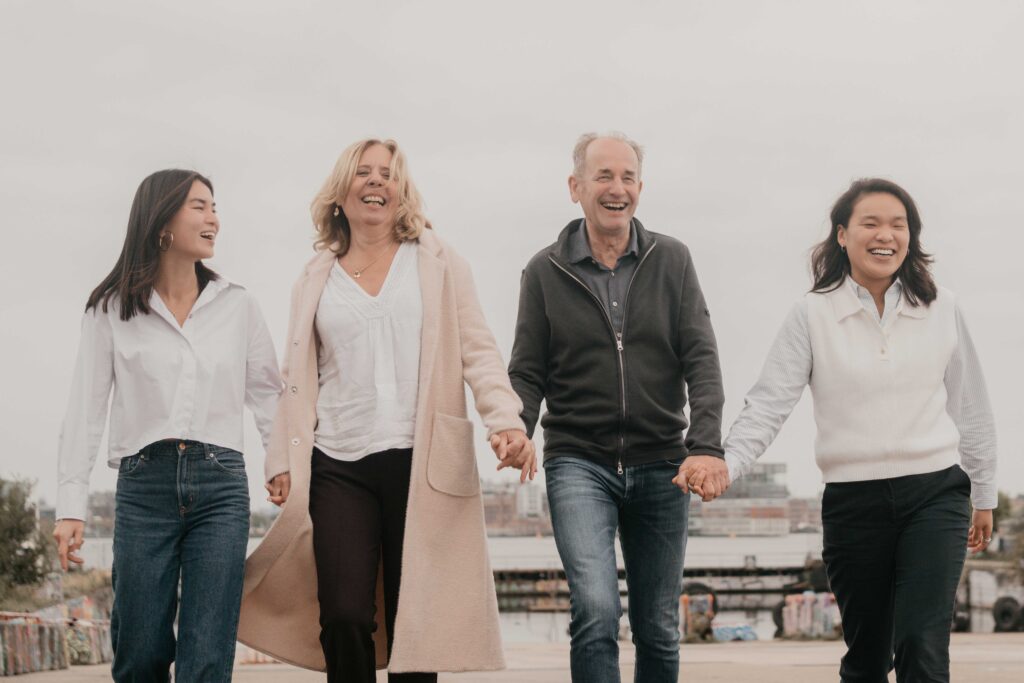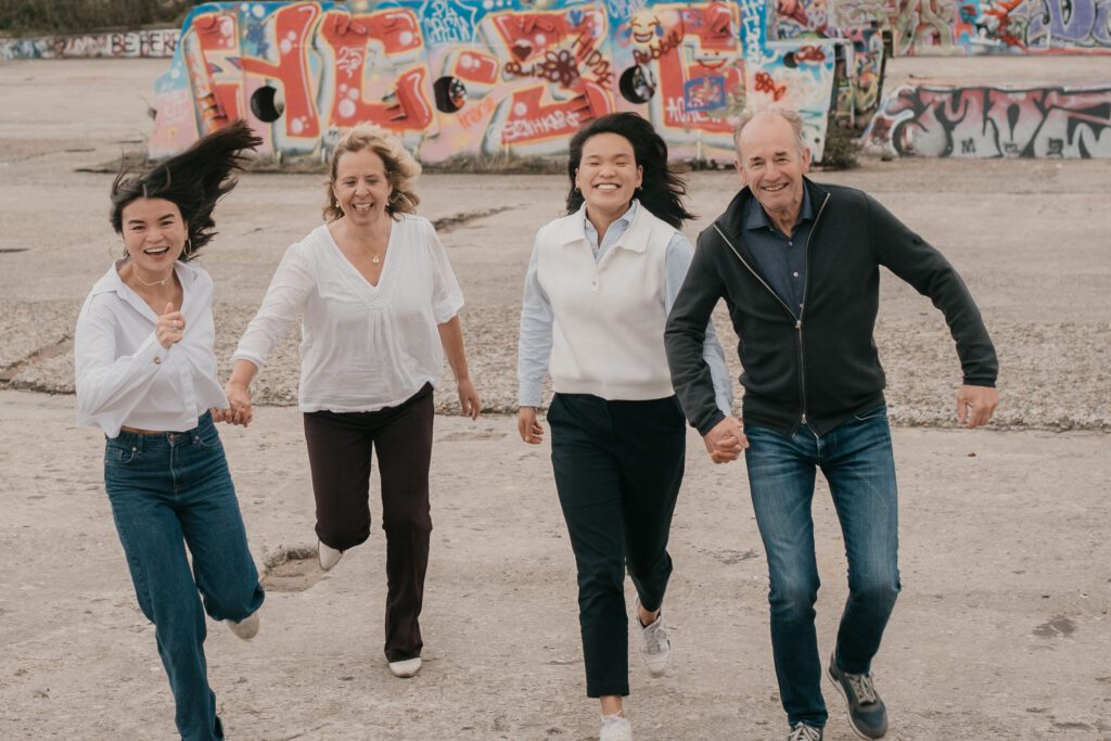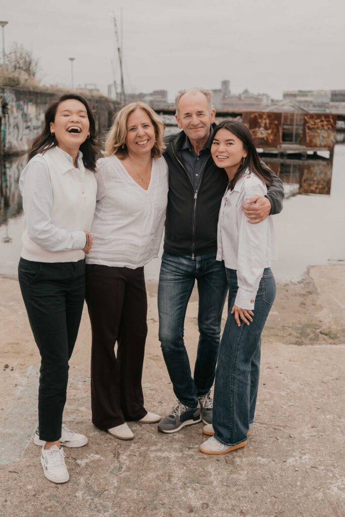 Wat deze shoot zo bijzonder maakte, was de ongedwongen sfeer. Geen stijve poses, maar echte momenten vol plezier. Van spontane knuffels tot vrolijke blikken de foto’s laten precies zien wie ze zijn: een warm, vrolijk en levenslustig gezin.