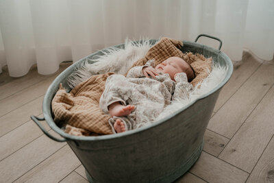 Het is prettig om in je eigen omgeving te zijn met de baby. Alles gaat heel relaxed en het is leuk om de details van bijvoorbeeld de babykamer ook op de foto te hebben. Het zijn hele spontane en natuurlijke foto's geworden. Kortom een prachtige herinnering voor later. Heel erg bedankt.''